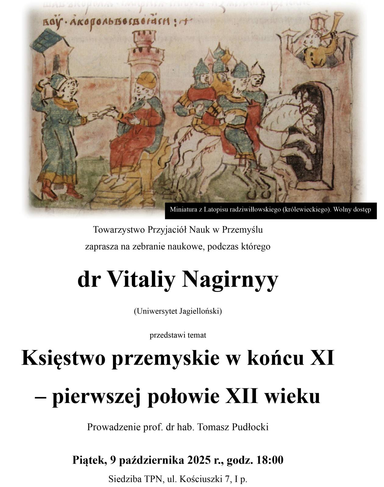 Towarzystwo Przyjaciół Nauk w Przemyślu zaprasza na zebranie naukowe, podczas którego dr Vitaliy Nagirnyy