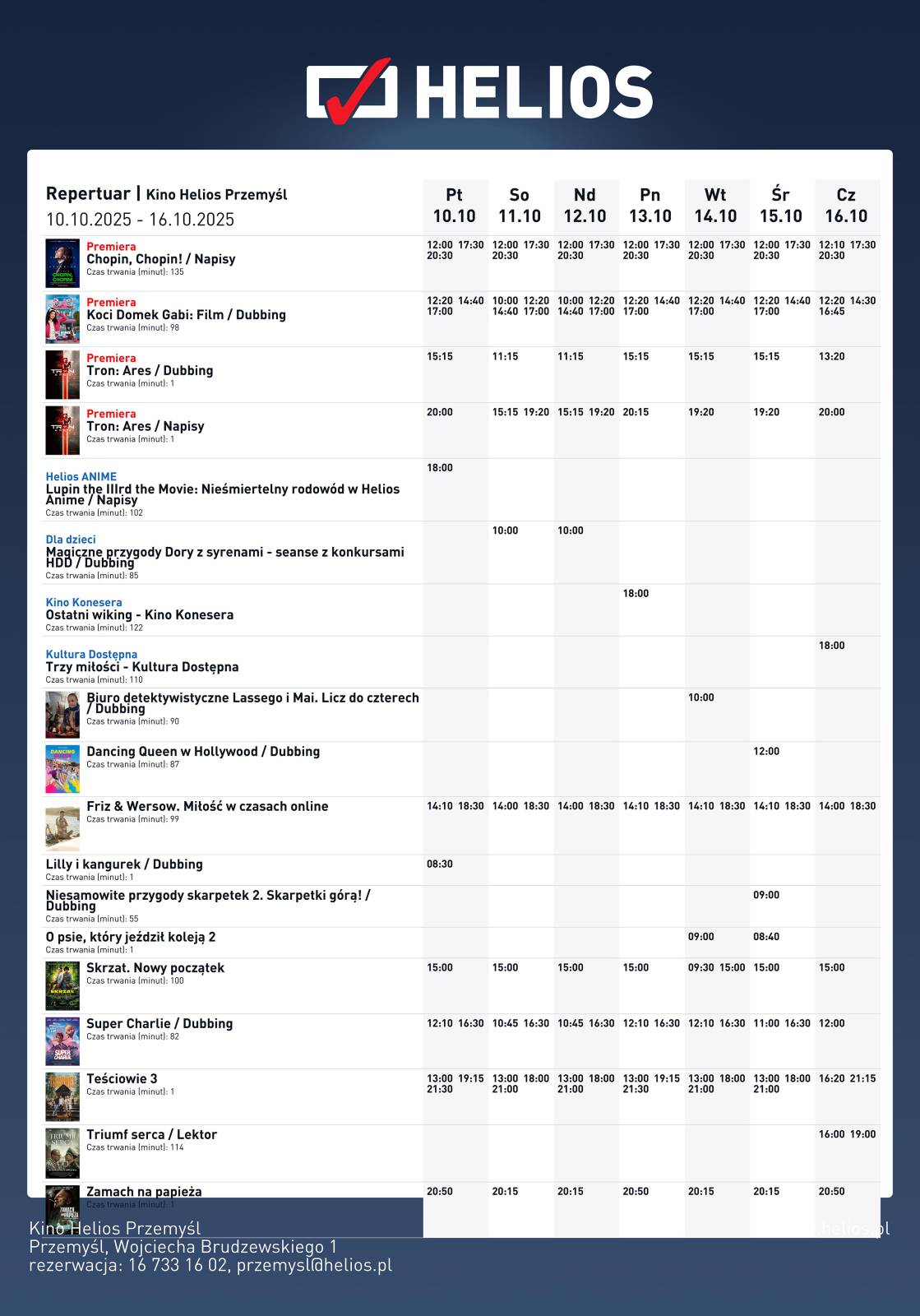 Repertuar Kina Helios Przemyśl 10-16.10.2025