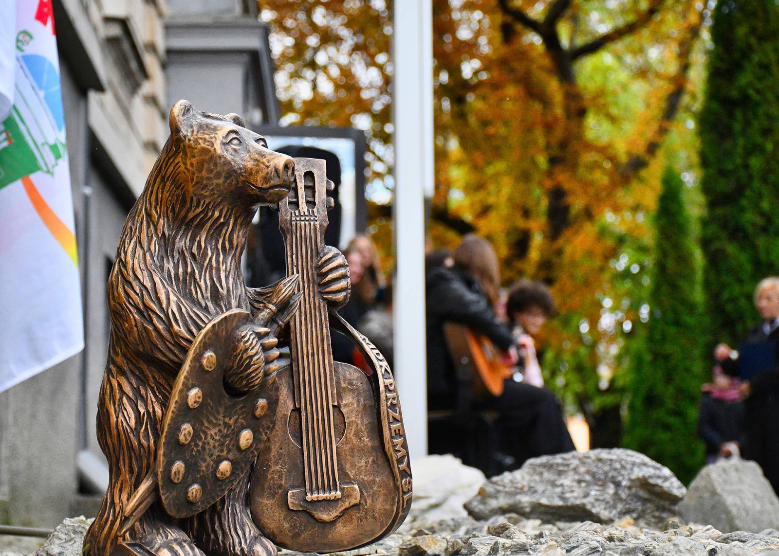 Ten słodziak z gitarą i paletą malarską w łapkach dumnie pozdrawia przechodniów przy siedzibie Młodzieżowego Domu Kultury w Przemyślu, przy ulicy Świętego Józefa.