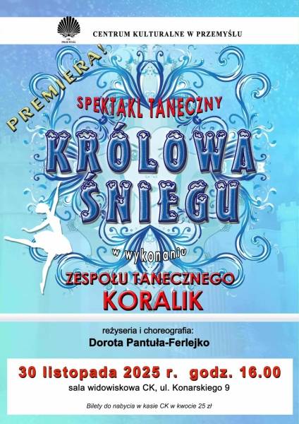 Centrum Kulturalne w Przemyślu ma zaszczyt zaprosić na premierę spektaklu tanecznego „Królowa Śniegu" w wykonaniu Zespołu Tanecznego KORALIK!