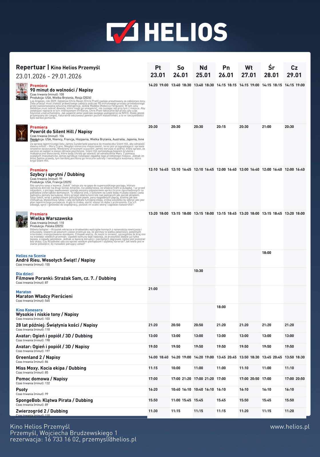 Repertuar Kina Helios 23.01.2026 - 29.01.2026